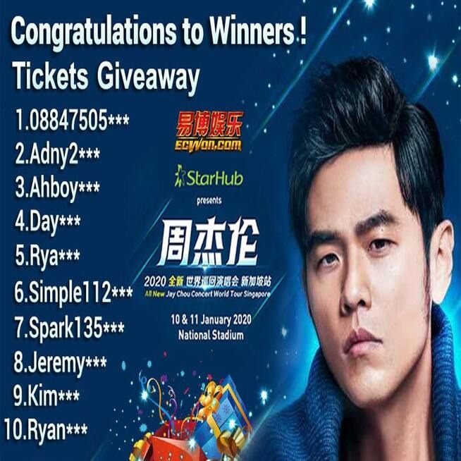 易博送出周杰伦世界巡回演唱会新加坡站门票!